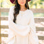 Dies ist nicht irgendein Pullover; vielmehr handelt es sich um ein Meisterwerk, das Ihre Sinne verzaubert und Ihren Stil mit einer Prise bezaubernder Einfachheit umarmt. Stellen Sie sich die sanfte Umarmung einer milden Herbstbrise vor – genau das bietet der "Avy's Weißer Dolman-Pullover", mit einer Prise raffinierter Raffinesse und einem Hauch mühelosen Charmes.