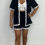 Entdecke pure Lässigkeit und süßen Charme in unserem WellenWeiß Zweiteiler-Set! Das luftige Outfit aus Kurzarm-Hemd und passenden Shorts punktet mit verspielten Wellenbesätzen und einem lockeren Schnitt – perfekt für warme Tage, entspannte Spaziergänge oder stylische Beach-Dates.